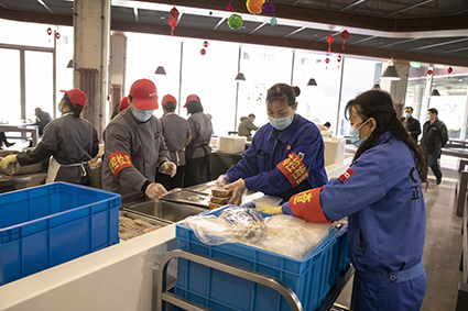 客串“外卖”,冬日暖阳。按照疫情防控的要求,公司将培训公寓设置为集中隔离区,用于返宁员工复工前封闭隔离。随着2月8日第一批员工入住,食堂就主动承担了隔离员工一日三餐的送餐服务。每到饭点提前分餐装盒保温,专人定时送至隔离区的每一位员工。随着部分员工隔离结束返回公司租赁的开发区公寓住宿,又主动承担了这部分员工周末早中晚三餐与送餐服务。据不完全统计,食堂已为隔离员工送餐4416份,在特殊时期用一份份“暖心外卖”温暖了一百多名隔离员工的心。他们对此幽默的说“过年吃的终于消耗了,减肥成功”。