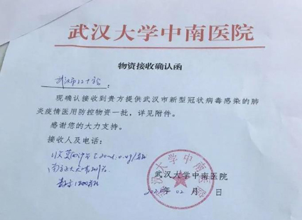 1月27日(大年初三)公司做出向武汉捐款50万元、捐助临床急需的莫西沙星注射液(用于肺炎治疗)药品的决定后,相关部门第一时间行动起来。一方面,积极与武汉部分重点医院对接,在最短的时间内将防疫一线的迫切需求反馈至公司;另一方面迅速与南京红十字会接洽捐款事宜,并急临床之所急将50万元捐款全部购置N95口罩用于一线医护工作者的防护,用短短两天的时间就完成了所有对接、落实与捐款工作。