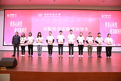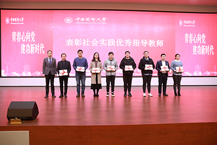 不言之言,闻于雷鼓。基于本次社会实践所取得的丰硕成果,药大校团委书记戴亮随即宣读表彰决定,共表彰优秀学生10人、优秀教师8人、优秀团队10组、优秀调研报告撰稿人10人、优秀组织单位3个。由王正华副校长、张翎副总等领导为获奖个人及团体代表颁奖。