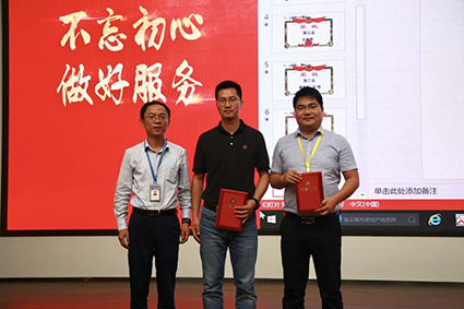 在市场前景规划环节,吕卫东总监从外部市场格局变化的机遇和挑战、重点产品市场潜力的深度挖掘、渠道市场服务的不断细化三个维度,为渠道销售的市场规划和布局指明道路。 岁月不居,天道酬勤,不忘初心,砥砺前行。颁奖典礼随即举行,田舟山总经理携公司领导及各商务区负责人陆续受邀上台,为2019年上半年渠道销售工作中做出突出贡献的先进个人颁奖。接受表彰,是初心在昂扬音乐声中的再次印证,更是信念在澎湃激情下的又一次坚定。