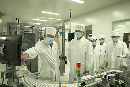 双方在党员活动室举行座谈,田舟山书记代表公司党委就企业历史及经营概况、党员规模及分布、党建及主题教育开展等各方面情况向黎政委一行作简要介绍。他指出,南京正大天晴虽是合资企业,但在经营中高度重视党员规模发展、党建元素覆盖、党务活动开展以及党建教育成果转化,积极参与外部党建交流和联盟建设。目前,党务工作已成为凝聚团队战斗力和促进企业高质量健康发展的政治保障和强大推动力。 黎海东政委在交流中表示,党建工作不能闭门造车、故步自封,要在时代中发展、在交流中成长,更要善于在现有党建理论体系中提炼出有特色、适应团队发展的建设模式,打造党建品牌,激发党建活力。南京正大天晴党建工作开展扎实、成果丰硕、开放性高,必能在未来“警企共建”中发挥重要作用。 随后,在公司党委领导的陪同下,黎政委一行先后参观了公司行政办公楼、研究院、固体制剂及无菌制剂车间、员工餐厅等主要办公及生活区域,详细了解各区域内党员示范岗、党员创新活动室、流动红旗等党建设施配置和各实验室、车间仪器设备配置及人员结构情况,对公司别出心裁的党建元素设计和现有国际化研发制造平台给予高度评价。