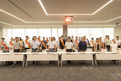 国歌声声嘹亮,行远不忘初心。与会人员首先全体起立,集体颂唱国歌,在满怀昂扬斗志和对我党先贤的无限崇敬中,庄重肃穆的现场萦绕着一种继往开来、自强不息的气质,激励着到场的每一位党员,再通过他们传递给每一位南京正大天晴人。