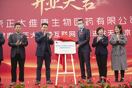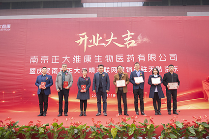 仪式的最后,在全体到场人员的掌声与注视下,公司党委书记、总经理田舟山、执行副总经理张震乾、市场医学总监吕卫东,陆续上台为“南京正大维康生物医药有限公司”及“南京正大天晴互联网营销平台”揭牌,相关人员纷纷上台合影留念。