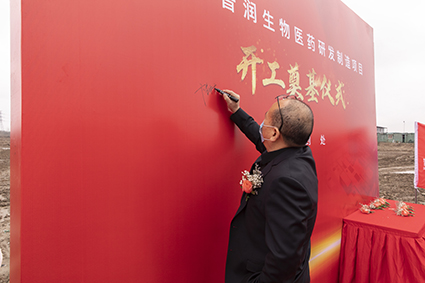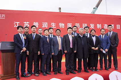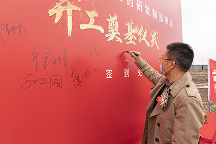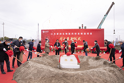 上午十时八分,仪式正式开始,首先由公司工程技术总监吉训进介绍“普润生物医药研发制造项目”概况。该项目按照母公司南京正大天晴在南京市的整体布局,为达到集团董事会确定的“搭平台、高标准、国际化”战略定位,于2019年正式启动,项目占地300亩,计划总投资额约30亿元,建设面积约20万平方米,建成后将实现集团公司在医药制造领域的全产业链体系布局。 随后,南京江北新材料科技园卞钟武主任上台致辞,他表示,在疫情防控局势持续向好、生产生活秩序逐渐恢复的背景下,普润医药项目开工奠基是科技园统筹推进疫情防控和经济发展的又一有力举措。南京正大天晴是位列中国化药综合实力百强的高科技成长型企业,江苏普润生物医药有限公司作为其首家全资子公司,发展潜力巨大,必将为科技园的发展集聚更多新要素、注入更多新活力、获得更多新优势,也必将有力推动科技园转型升级和高质量发展,希望各部门、各单位以开工为起点,全力以赴抓好问题的协调、要素的保障、项目的推进,争取项目早建成、早投产、早达效,科技园愿与各单位一道携手共进、双赢发展,共同迈进世界级园区行列。 南京正大天晴资深副总经理兼江苏普润生物医药有限公司总经理王宽起在发言中指出,“普润生物医药研发制造项目”自立项以来,得到了省委书记娄勤俭、市长韩立明以及江北新区、新材料科技园等各级领导的高度关注、亲切关怀,公司将承继母公司优秀的建设、经营经验,全面贯彻QBD理念,通过国际化招标等手段,在功能区设计和整体效果呈现上精益求精,并且始终牢记作为企业公民的使命担当,以超前的建设理念、科学的规划布局、较高的建设标准,不负使命,不负韶华,撸起袖子加油干,将脚下的300亩土地打造成一张平台优越、功能完善、创新力强的“时代企业名片”。 掌声雷动,礼炮齐鸣。在全体嘉宾的注视下,江北新材料科技园及各单位与会主要领导共同挥锹,为江苏普润生物医药有限公司奠基!仪式最后,各位领导及到场嘉宾纷纷合影留恋。